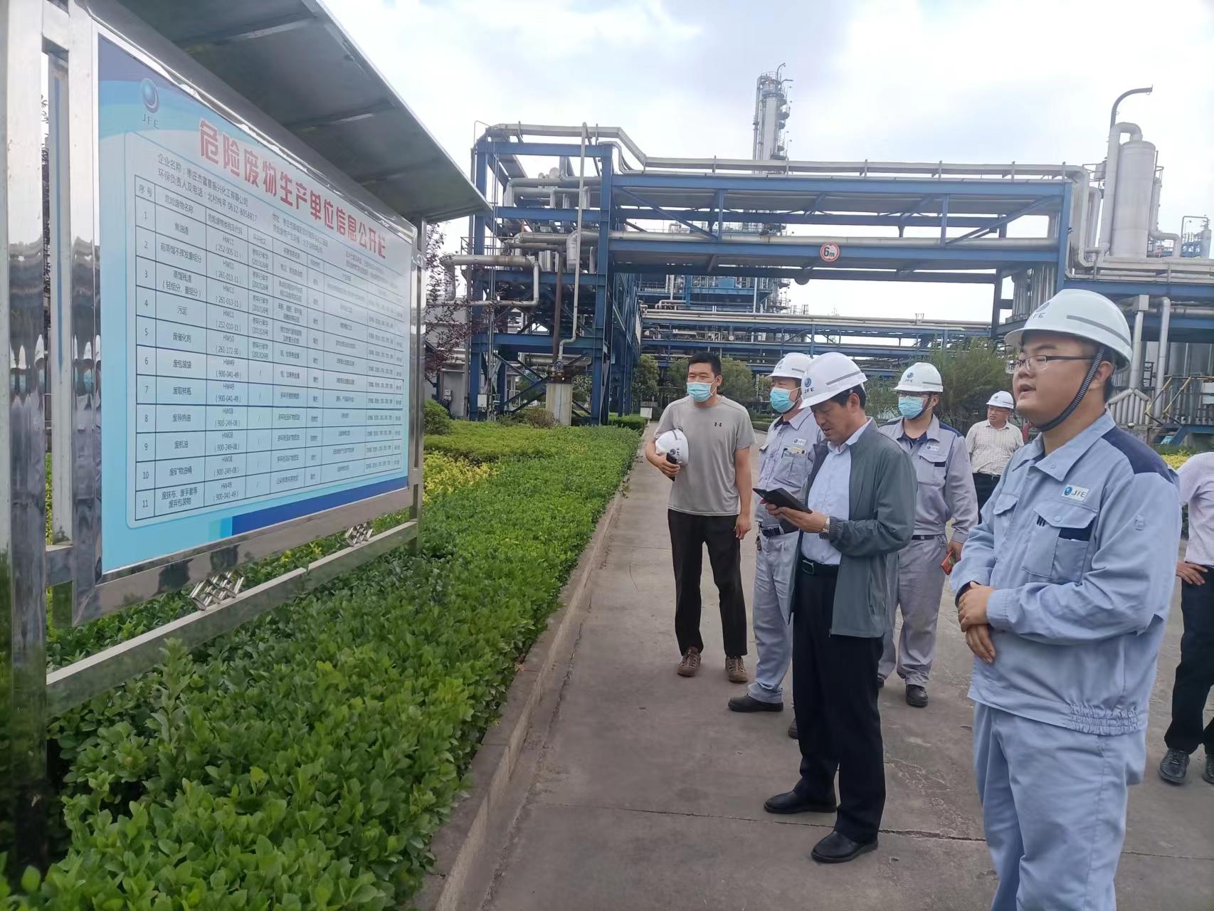 6月22日上午,山東省固廢和危化品污防中 心副主任呂瑞學(xué)帶領(lǐng)省生 態(tài)環(huán)境廳危險(xiǎn)廢物幫扶組一行到棗莊杰富意公司檢查指導(dǎo)危險(xiǎn)廢物管理工作。棗莊市生 態(tài)環(huán)境局固廢土壤科科長高虎、市生 態(tài)環(huán)境局薛城分局副局長郭濤,公司安 全總監(jiān)楊建杰等陪同。